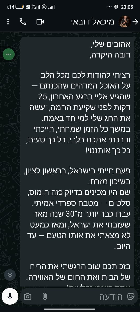Chef Zohar Hadani is a graduate of the prestigious "Tadmor" Culinary Arts School, one of the leading culinary institutions in Israel. With over 35 years of extensive experience, Chef Hadani has led kosher kitchens in various prestigious and unique settings, including serving as the Executive Chef at the "Four Seasons" hotel in Netanya.